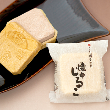 横濱文明堂の懐中しるこは、もなか皮の中に粉末のさらし餡を入れた日本古来のインスタント食品です。